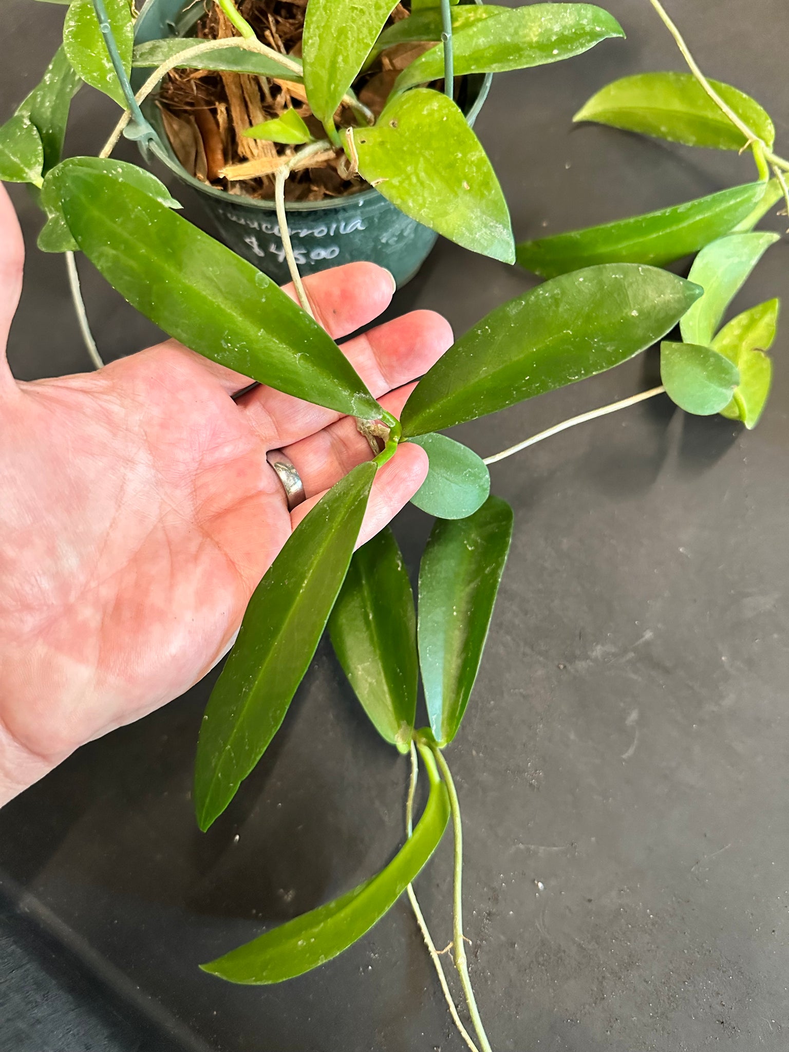Hoya Black Dragon pubicorolla in a 5” hanging basket
