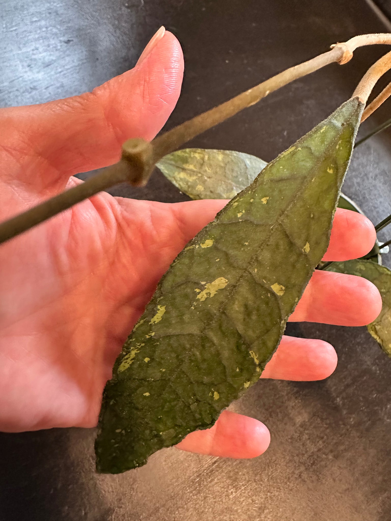 White spotting on leaves is residual from sprays used to control insects, mites and fungus.