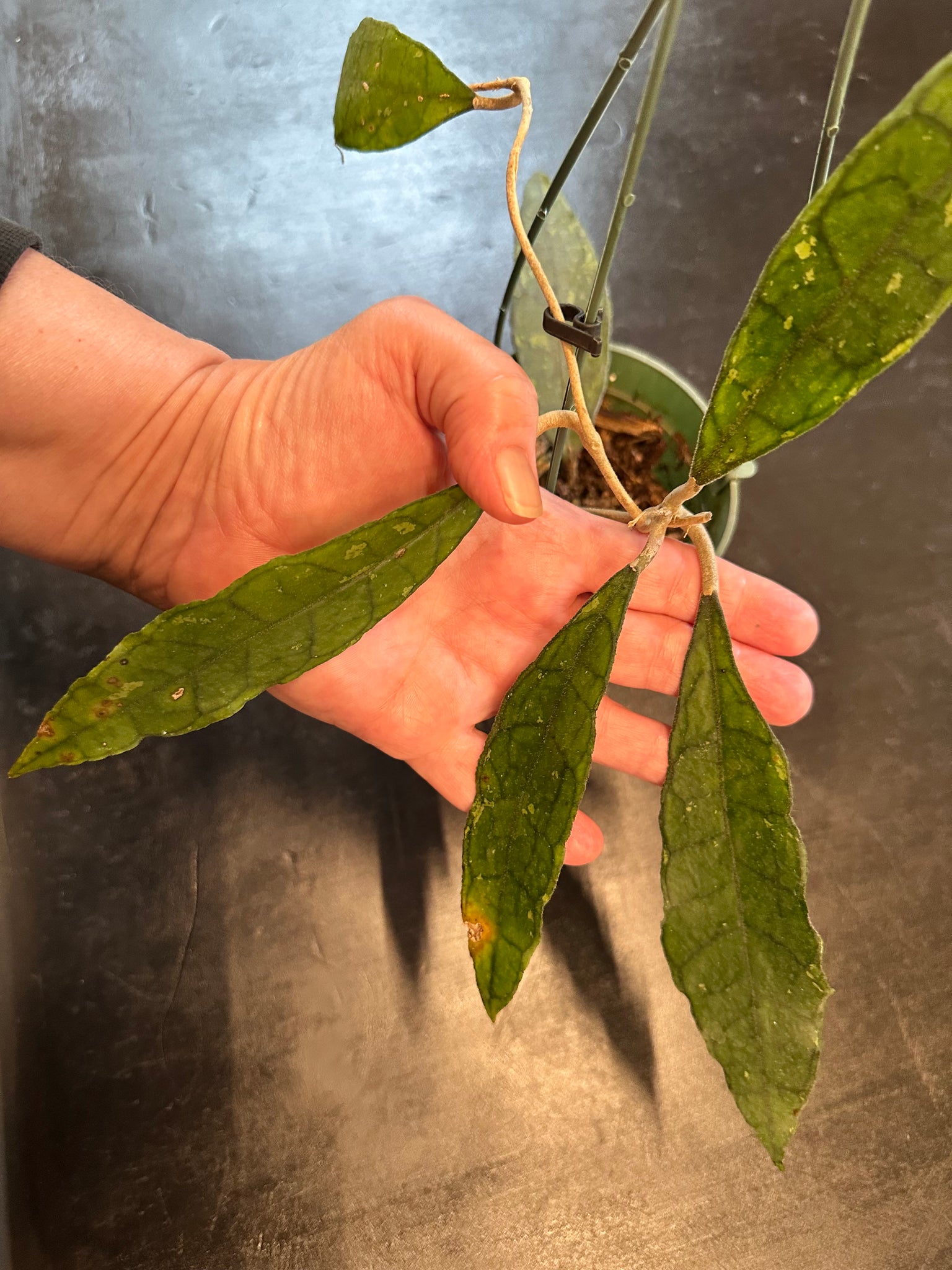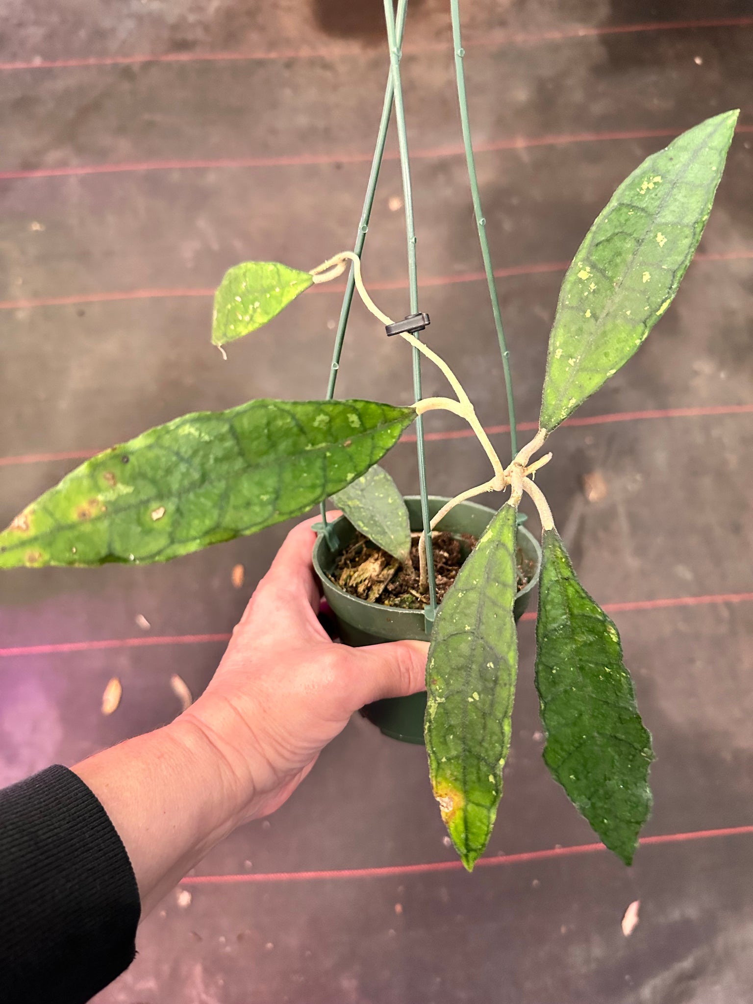 White/yellow spotting on leaves is residual from Neem Oil sprays used to control insects, mites and fungus.